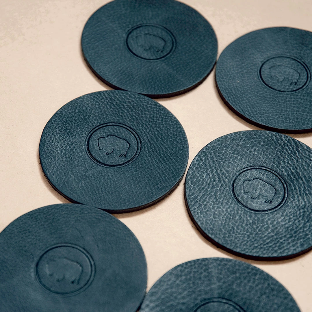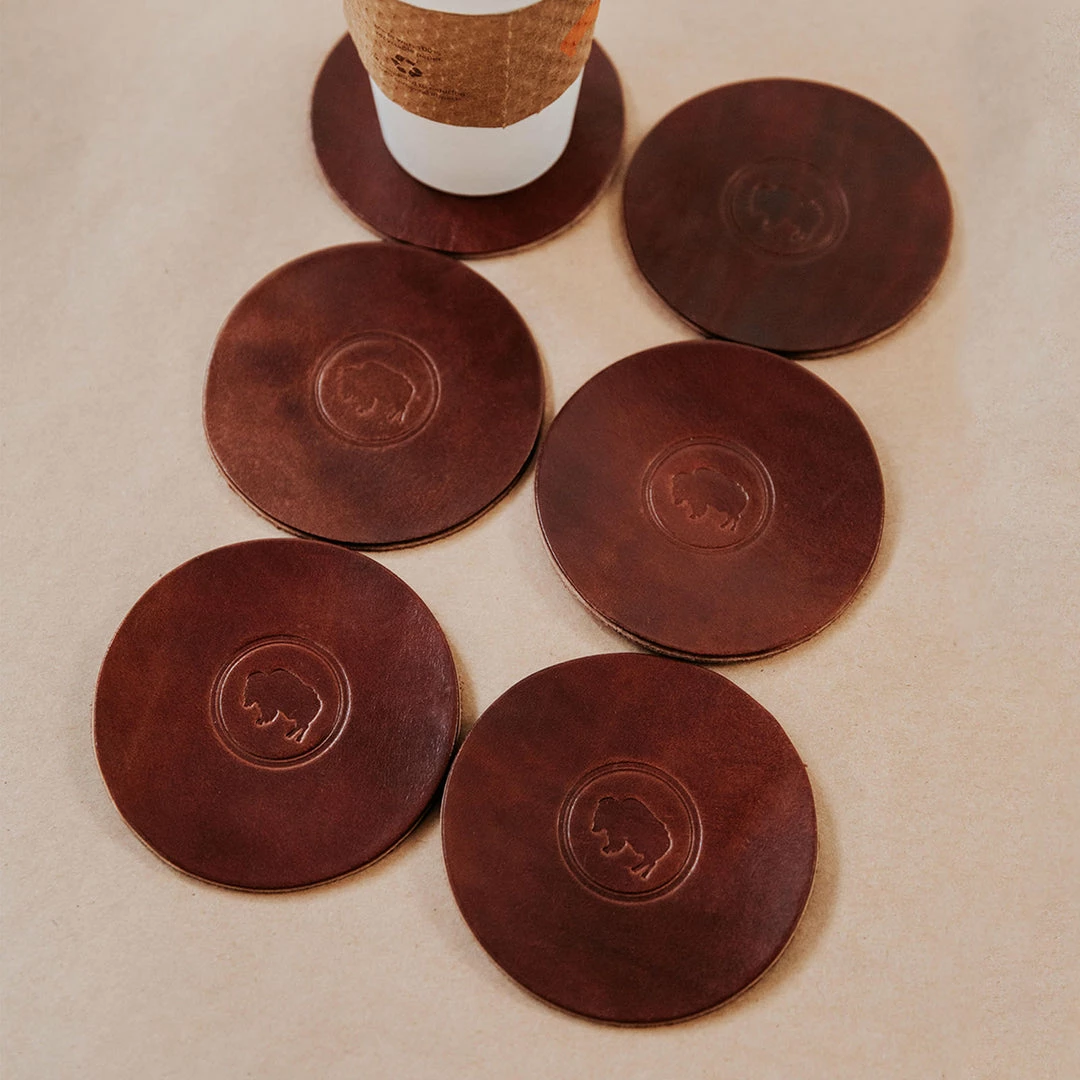 Protect your surfaces in style with leather coasters. We partnered with local leatherworker ColsenKeane right here in Charlotte, North Carolina for the creation of these coasters, which are crafted from thick 10 oz. hide and hand-pressed with our signature bison logo.