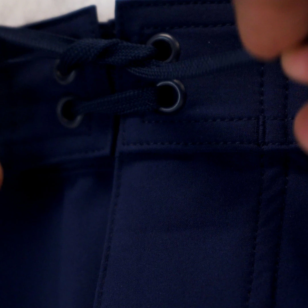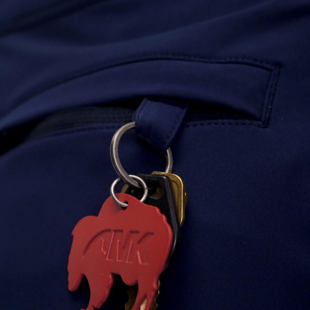 - Back welt pocket with zipper closure and hidden utility ring on wearer’s right