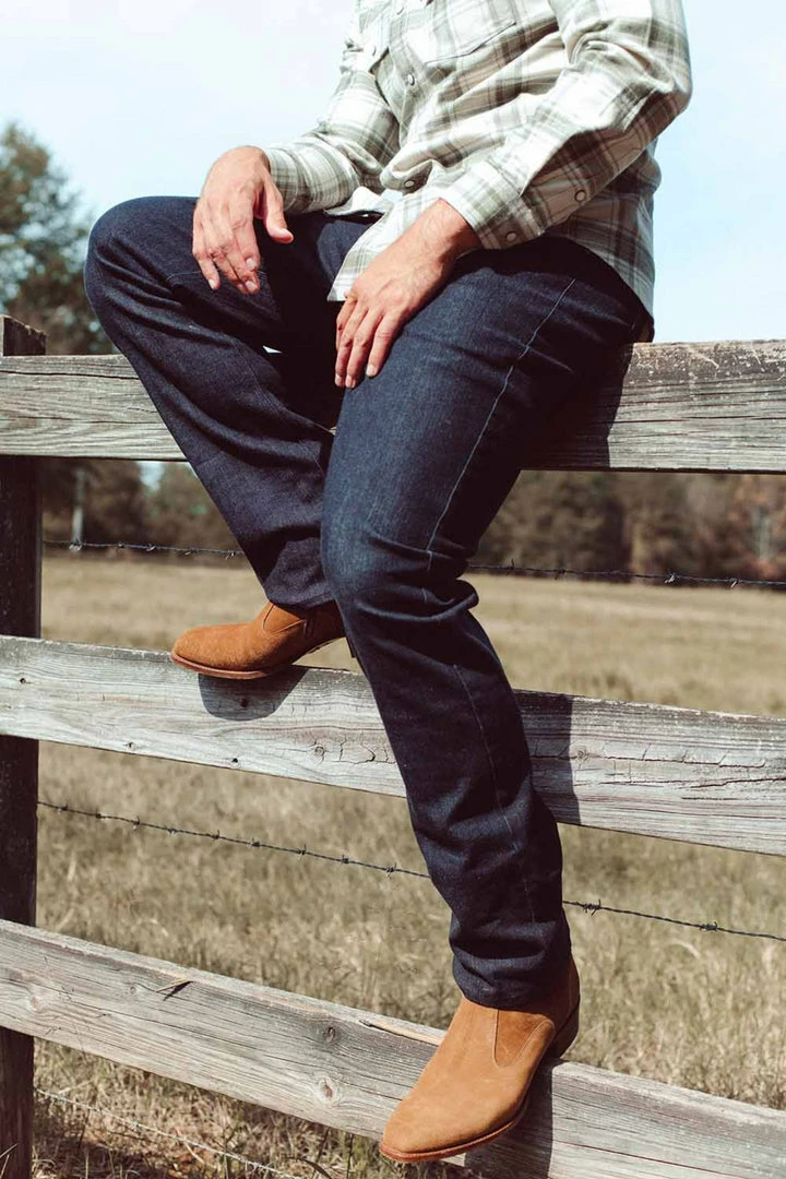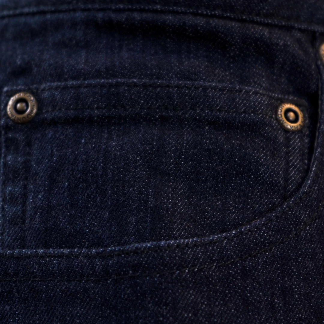 Every gentleman should have a pair of jeans that weather life as well as the calluses on their hands. Protection from the daily grind but also a reflection of hard work and accomplishments. Enter the Miter Denim Jean. Classic 5-pocket design with an organic cotton/stretch blend for just enough give, plus our action gusset for comfort and mobility. Triple-stitched seams and bar-tac reinforcements for supreme durability. Mountain peak stitching on the back pockets serves as a nod to your insatiable desire for adventure and the rugged days ahead.