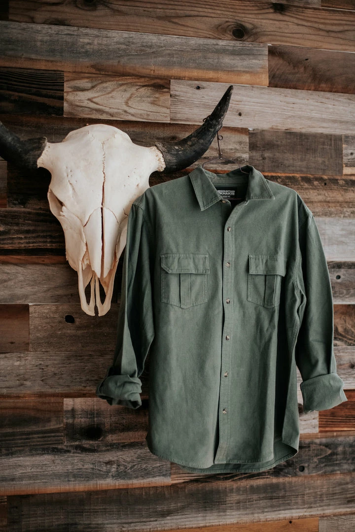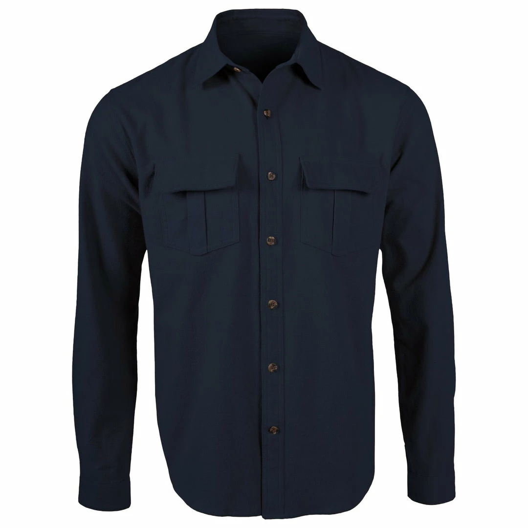 - Two chest pockets with hidden button flap closure