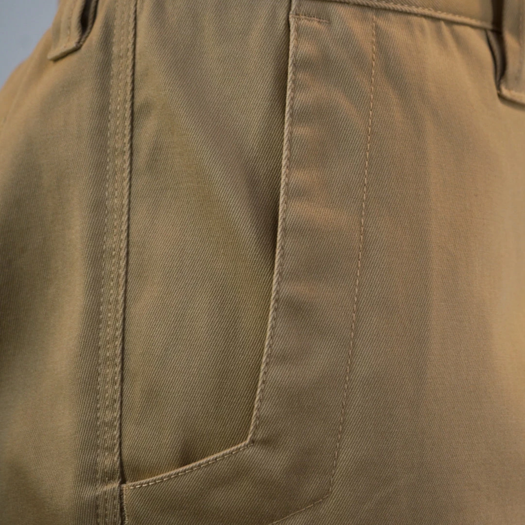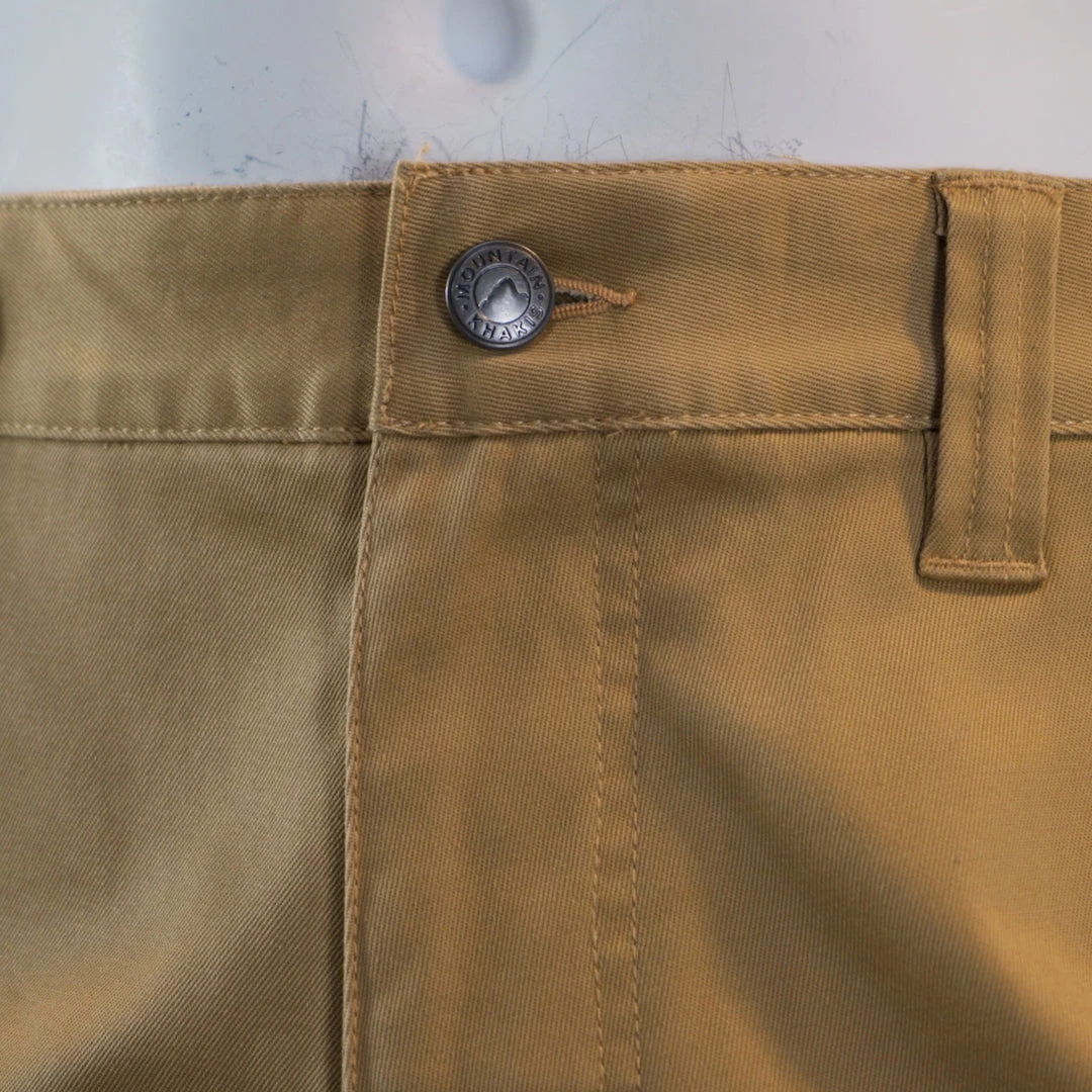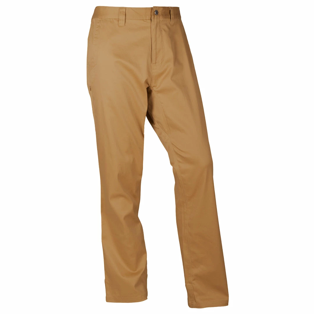 Mud, blood, suds… this pant was built for everyday mishaps. Spilled coffee? Not a problem. The Ridgeback Pant features a cotton/spandex twill blend and is coated with Teflonโข for the ultimate in stain protection. These pants require less frequent washing because the invisible shield of Teflon protects from stains and repels water, oil and everything in between. The best part is that you donโt have to sacrifice the weight, look, feel, color or breathability as this technology strictly fights stains and doesnโt impact the build of the pant. A true representation of a Mountain Khakis pant, itโs packed full of signature features including angled deep drill pockets, a hidden side seam deep drill hand pocket with zipper closure for added security, hidden drop-in pocket on your right thigh, triple-stitched seams and bar tac reinforcements and a double layer heel cuff for durability. Plus, our signature action gusset for comfort and mobility. Bring on the messy jobs. Take the road less traveled, no matter how sloppy the terrain is, and be confident that at the end of the day your pants will look as good as they did when you put them on.