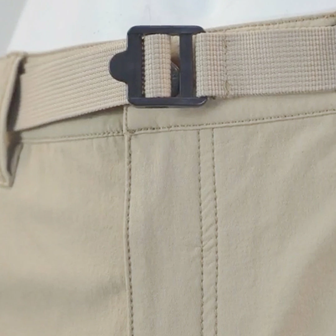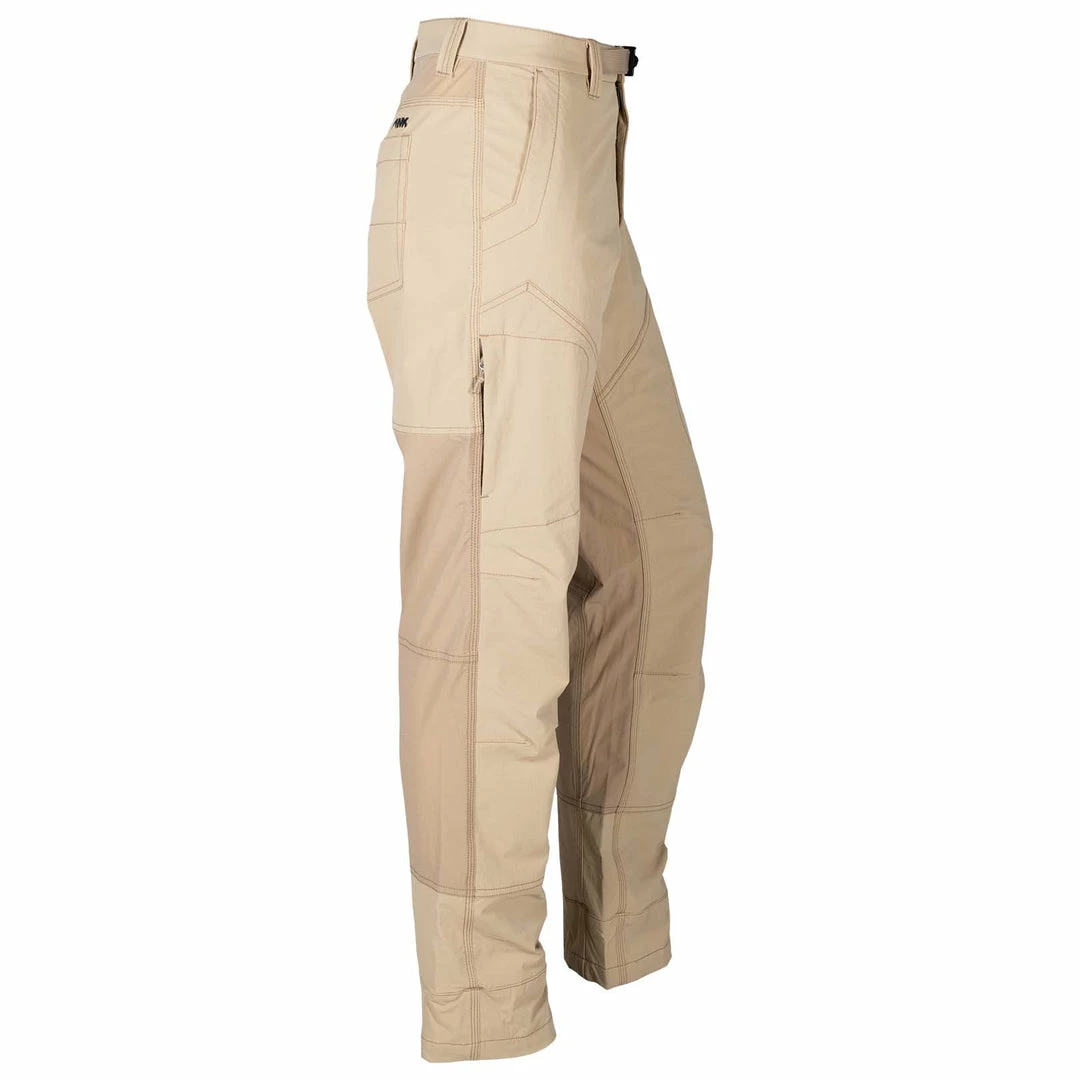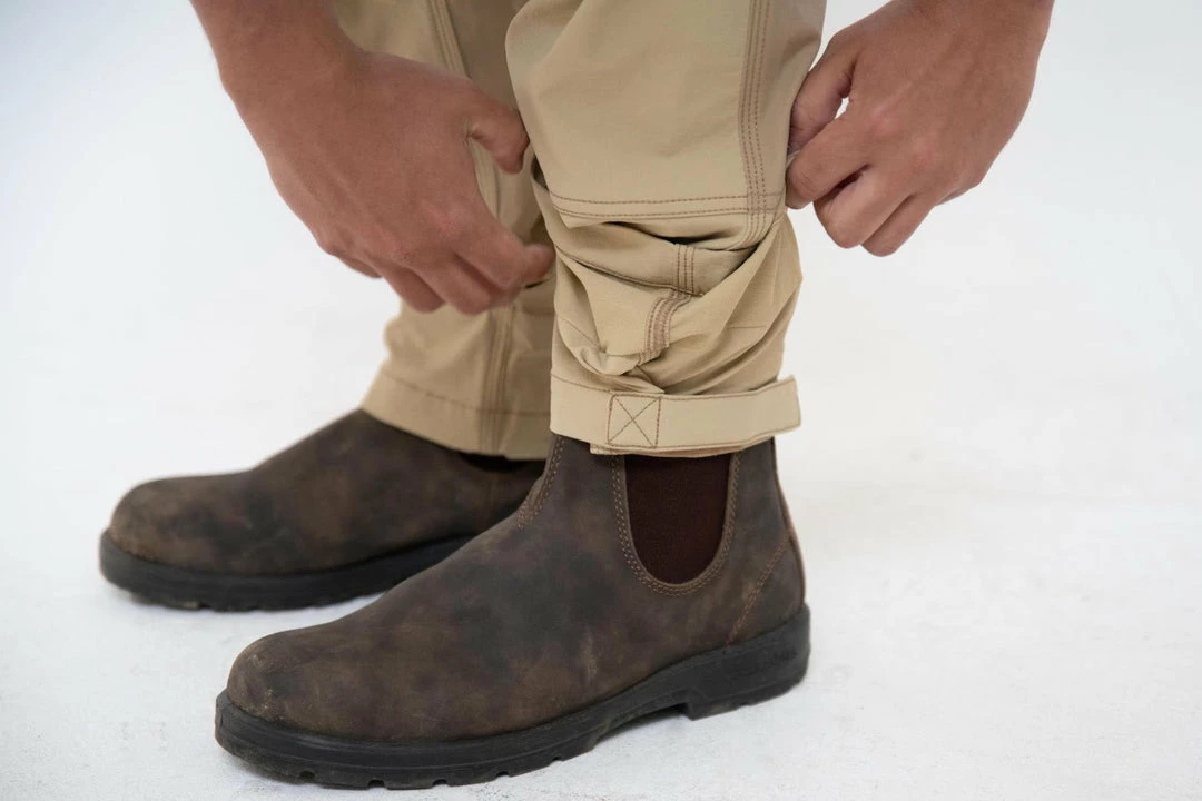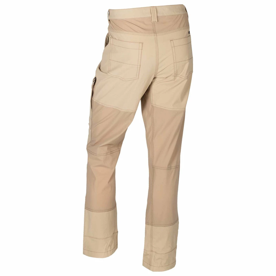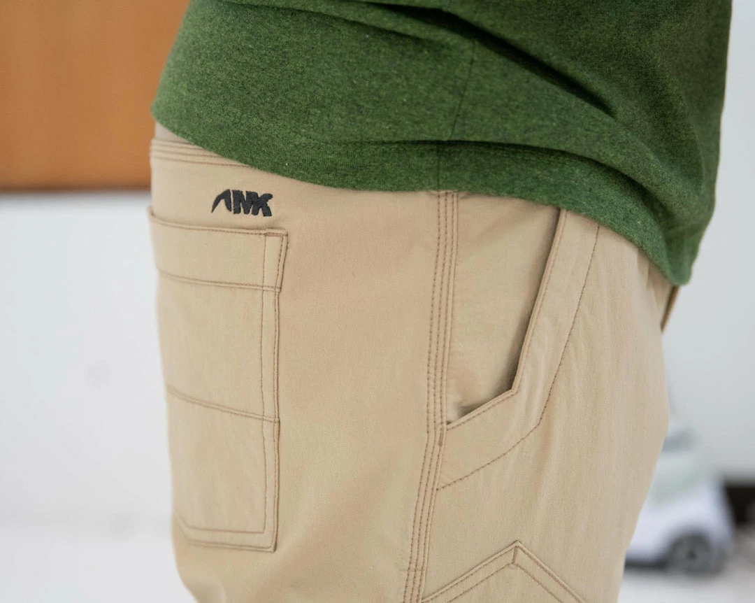 As the name implies, this pant is going places: we designed this one for climbing and chasing trails. As one of our most technical products, it’s loaded with premium fabrics and features. At 4.8oz the fabric is a cool, breathable nylon and is lightweight so it won’t slow you down. The nylon/spandex 4-way stretch makes up the majority of the pant with a bonus hybrid contrast fabric in key locations for the perfect blend of durability and mobility. Inherent attributes of nylon include stretch and elasticity, resistant to tears and abrasions, and rugged durability. The 4-way stretch piecing contains DWR to keep you dry. We’ve included a built-in webbing adjuster to make sure you get a secure waist fit no matter the circumstance. You’ll find some of our best signature features finishing off this pant including angled, deep drill hand pockets, side seam thigh pockets with zipper closures, an action gusset and knee articulation for comfort and mobility, triple-stitched seams & bar-tac reinforcements and hook & loop on the hem cuff to secure better around your footwear for added protection from the elements.