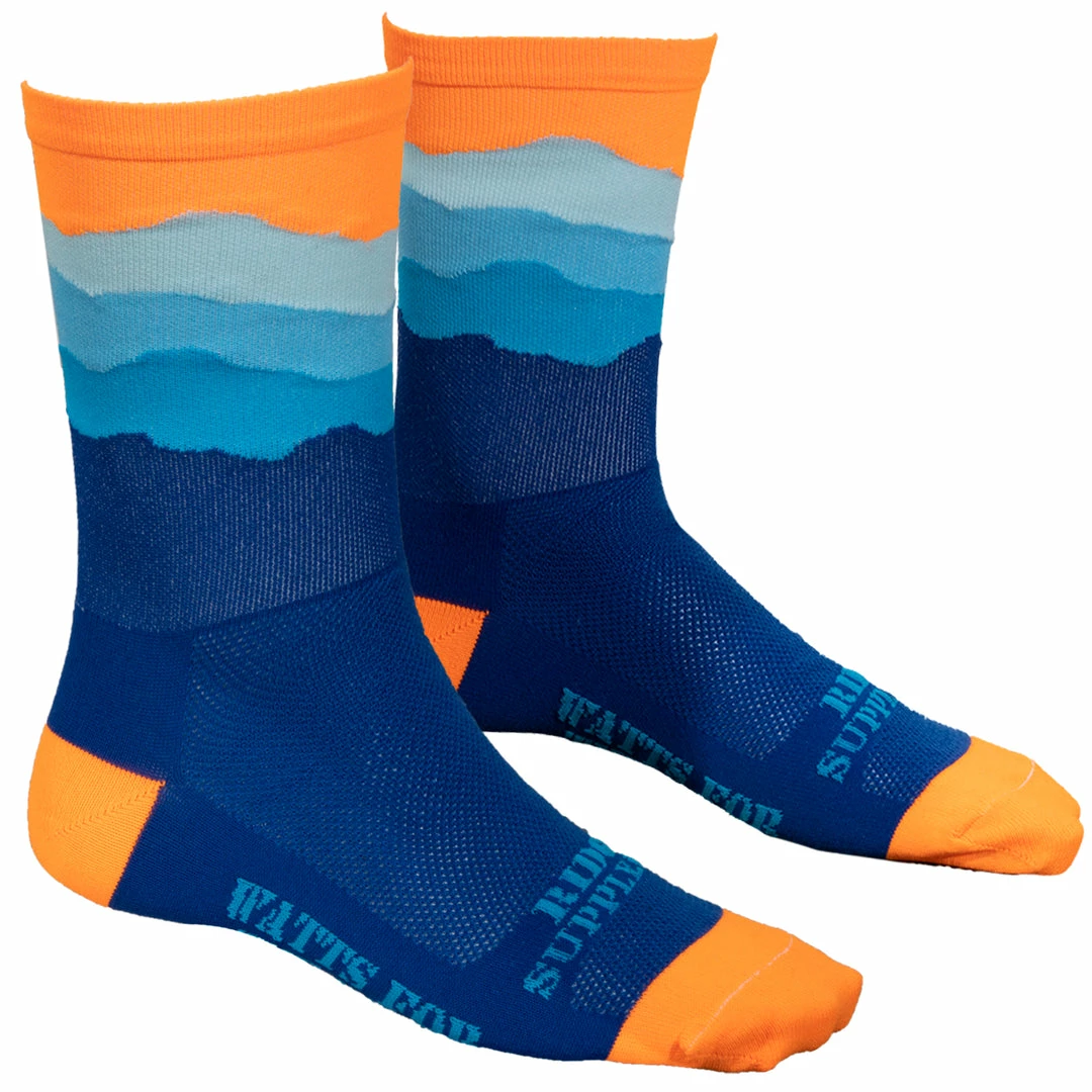 THE SKYLINE- ORANGE is the Skyline Dawn + a POP of Hi-Viz ORANGE to keep you seen on your ride. A lightweight, durable, and moisture wicking sock, this cycling sock & running sock is ultra-breathable. Ridge Supply are the World’s Finest Socks for Cycling, Running, Hiking, Business & Casual. All socks are designed and custom made right here in North Carolina.