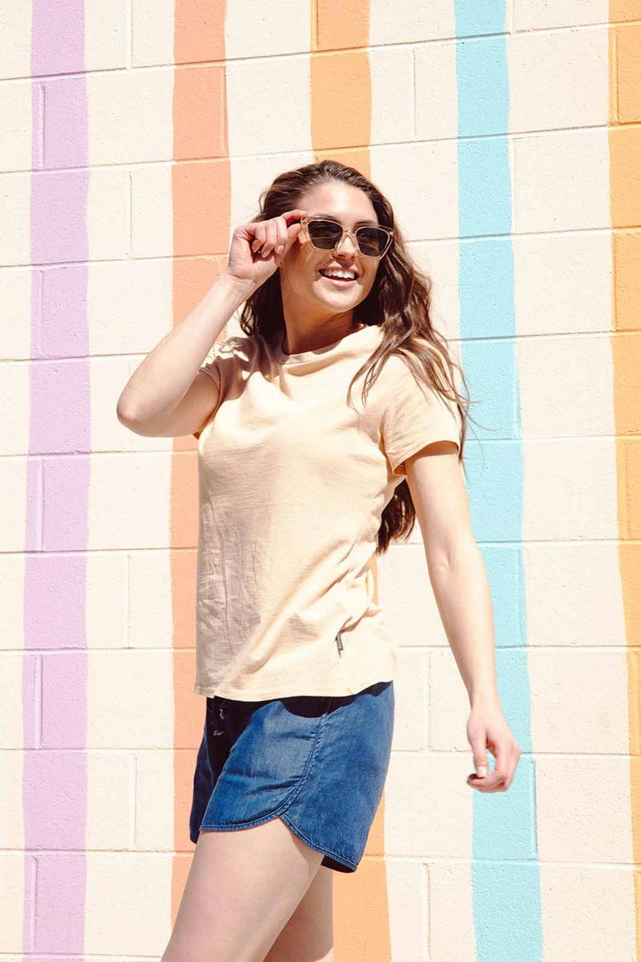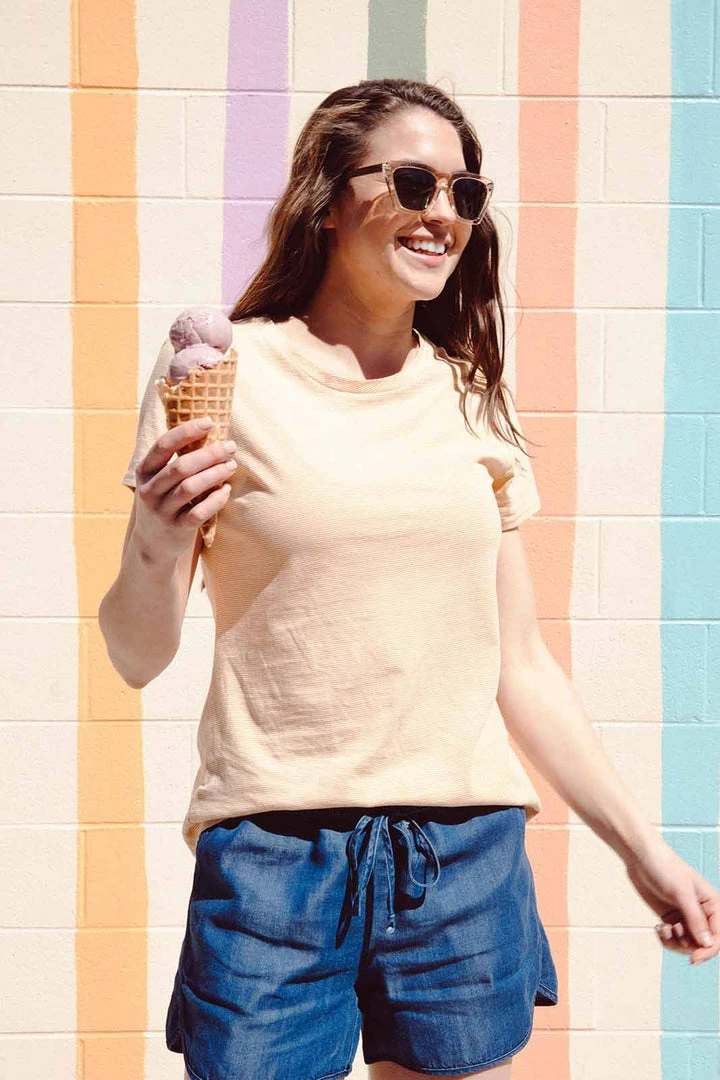 An everyday elevated basic that you’ll reach for over and over. The Peyton Knit Tee features yarn-dyed stripes in bright summer tones to add a pop of color to any outfit.